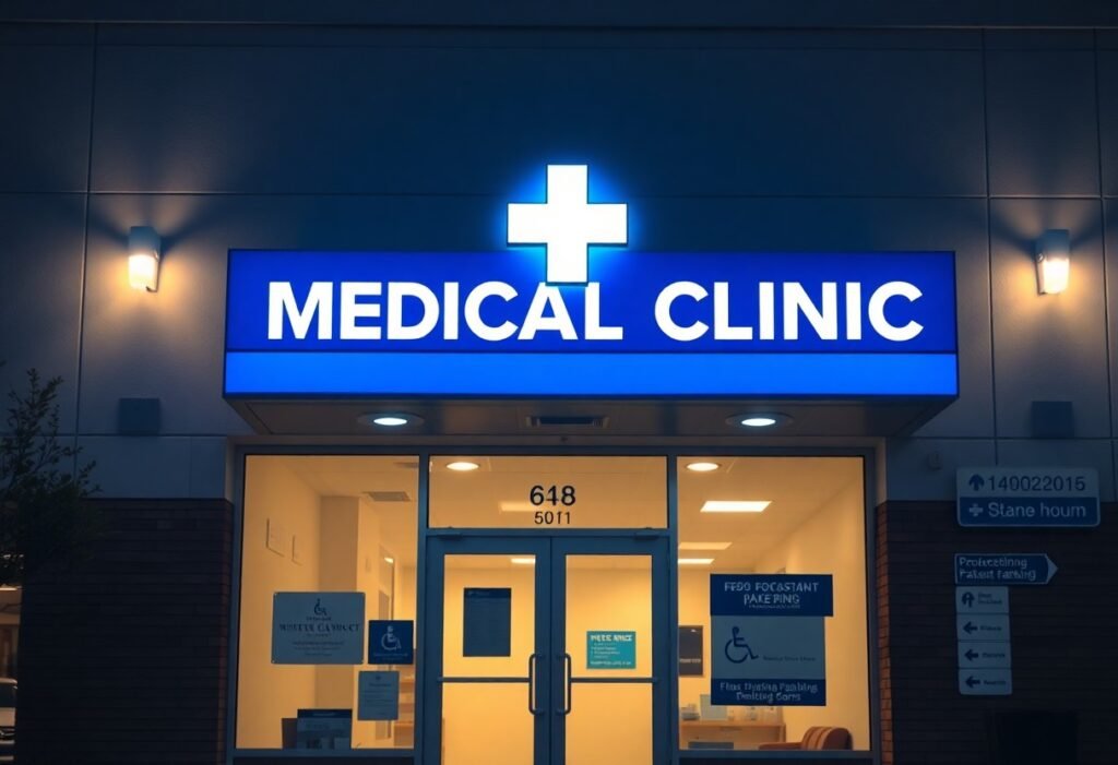 Just prioritize legibility, visibility, and trust when choosing storefront signs for your medical clinic; clear, sans-serif fonts, high-contrast colors, and professional medical symbols communicate competence and aid wayfinding. Opt for illuminated channel letters or backlit signs for nighttime visibility, non-reflective materials to ease readability, ADA-compliant directional and entrance signage, and consistent branding on awnings and window graphics. Your signage should convey professionalism, hours, and services plainly to patients arriving or passing by.
