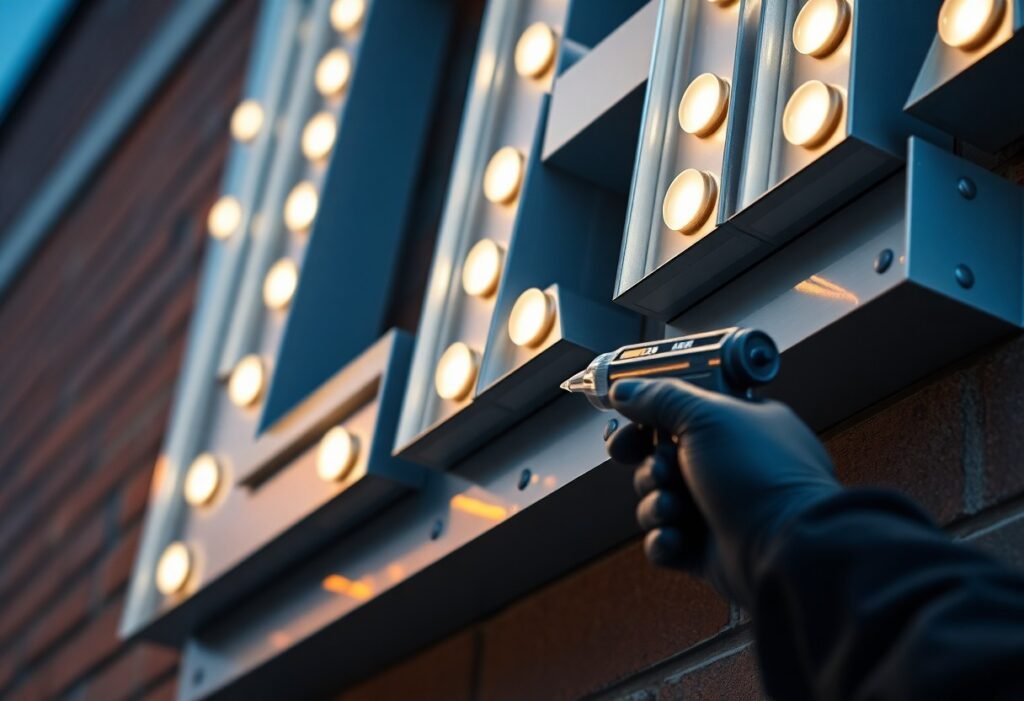During installation, follow the engineered template and site survey data so your letters align, load onto the substrate correctly, and maintain electrical routing into the back box; use a NEMA 3R or better backbox and route conduit through gasketed knockouts. Position letters to avoid direct runoff paths, test junctions with a 5-10 minute hose test at ~50 psi after sealing, and document fastener types and sealant batch numbers for future maintenance.