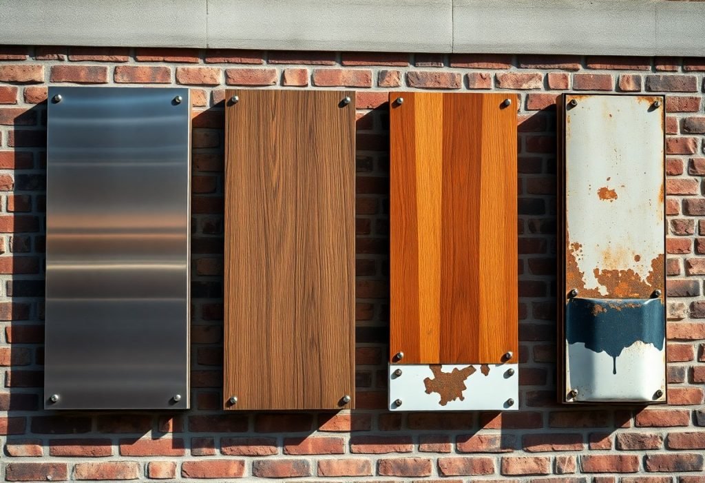 Cedar, redwood, and exterior-grade plywood are traditional choices; untreated or poorly finished wood signs often last only 3-7 years, while well-sealed cedar or redwood can last 10-15 years in favorable climates. You’ll notice that rot and delamination occur faster where moisture cycles are frequent, so joinery, edge sealing, and raised-mount details make a big difference in longevity.